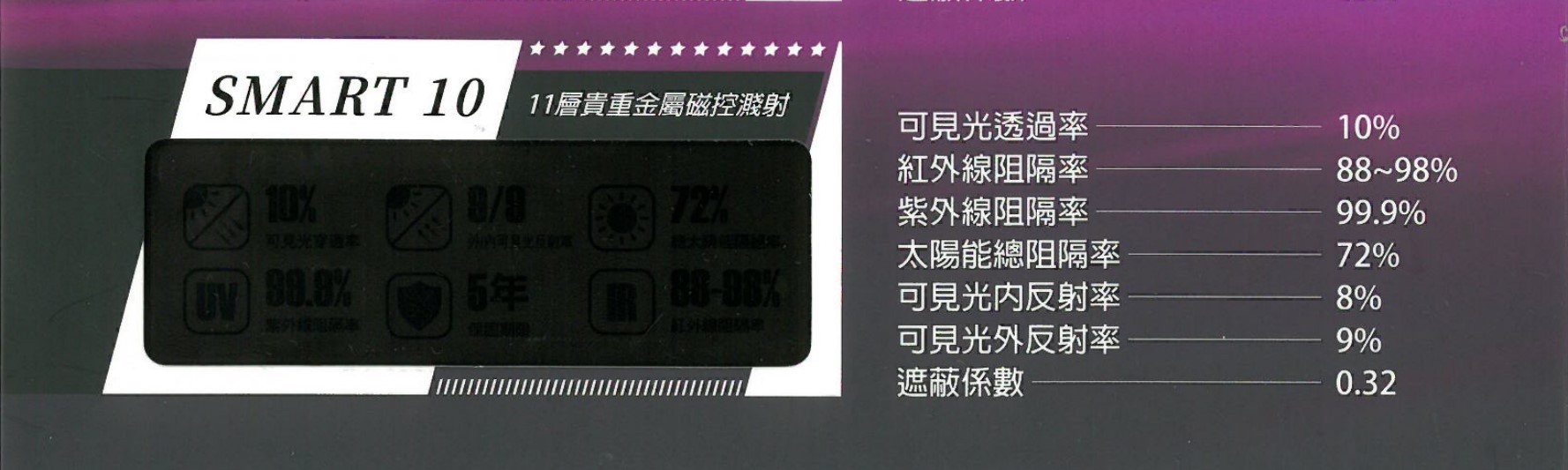首頁 > 隔熱紙 > 后羿系列桑瑪克隔熱紙-SMART 10